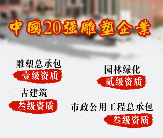 鑫特雕塑集團(tuán)是一家集石材雕刻、不銹鋼雕塑制作、鑄銅鑄造、鍛銅鍛造、玻璃鋼雕塑、水泥、木雕為一體的大型雕塑公司,擁有雕塑總承包1級(jí)資質(zhì)、園林綠化2級(jí)資質(zhì)、古建筑3級(jí)資質(zhì)、市政公用工程總承包3級(jí)資質(zhì),可綜合運(yùn)用各種雕塑材料完成項(xiàng)目的各個(gè)雕塑部分及建筑工程!